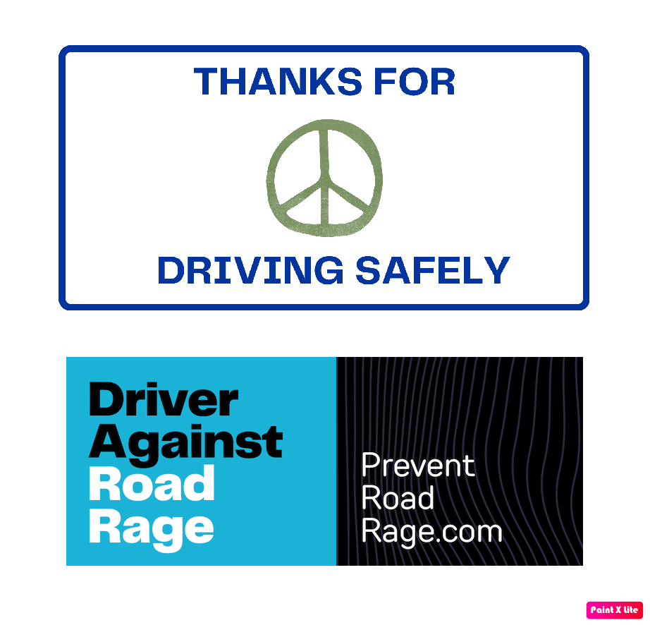 Double sided, quick flip window sign stating “Thanks For Driving Safely”/”Driver Against Road Rage”